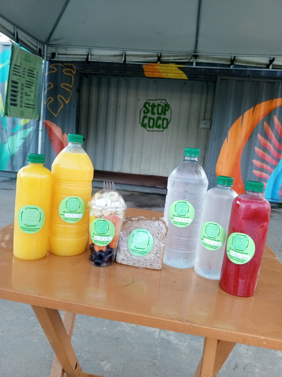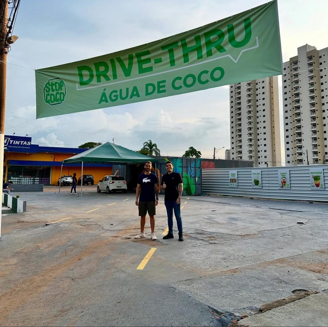 Drive Thru de água de coco, suco de laranja, sanduíche natural e açaí Venha se refrescar com uma bebida gelada Passe com o carro ou moto e retire sua água de coco gelada